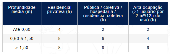 *Piscinas institucionais por tem um fluxo maior de pessoas, é recomendado um tempo de filtração maior do que piscinas residenciais privadas. Para piscinas residenciais privadas, recomenda-se a filtração diária durante 4 a 6 horas constantes.