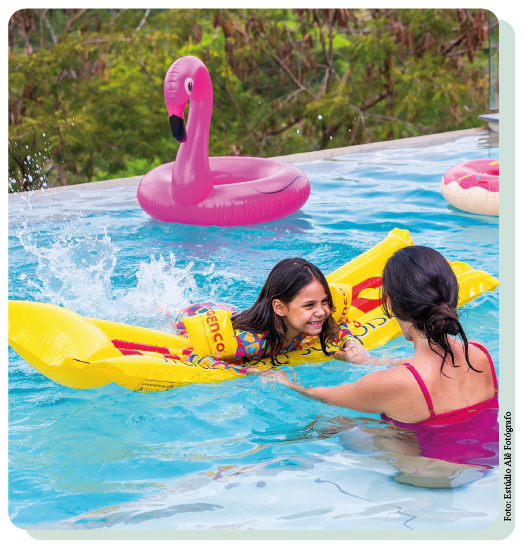 • Educação infantil: Use livros infantis como “A Piscina Segura” para ensinar regras de forma divertida. Incentive jogos como “nadar com boia” para construir confiança.