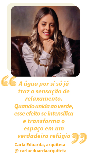 No que diz respeito a estilo, Carla observa que o moderno é o que mais se adapta às áreas com piscina. O uso de madeira, pedra e conceitos de biofilia garante elegância, seja em projetos minimalistas, contemporâneos ou em lounges e spas anexos. Para ela, a sofisticação verdadeira não está apenas na forma, mas na criação de ambientes saudáveis e acolhedores.