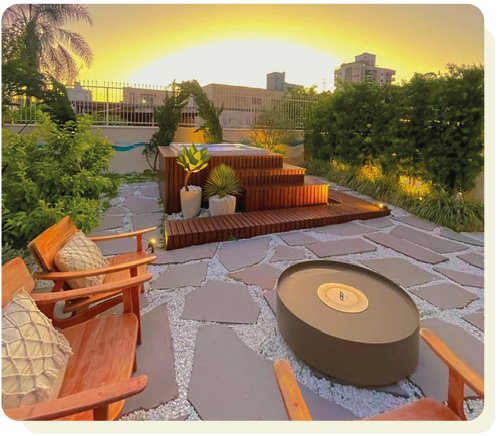 O mobiliário externo também desempenha papel fundamental. Muito além de decorar, ele personaliza o espaço, reflete a identidade do proprietário e transforma a piscina em extensão natural da sala de estar. “Mais do que um lugar para banho, a piscina pode ser palco de encontros sociais e momentos de convivência”, afirma a arquiteta. As inovações tecnológicas, por sua vez, ampliam o leque de possibilidades. Dispositivos internos mais discretos, automação integrada à iluminação e bordas infinitas estão entre as soluções que Carla mais valoriza por aliar praticidade, sofisticação e bem-estar.