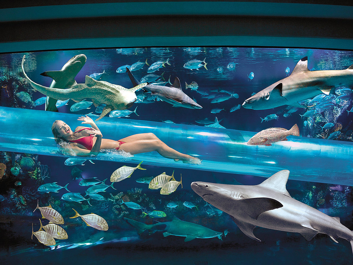 Apesar de ter um verão que pode atingir temperaturas de até 46oC, a cidade de Las Vegas atrai milhões de turistas todos os anos. Se a ideia é aproveitar o calor em um complexo de piscinas diferente, a sugestão é o Golden Nugget Hotel Las Vegas. O resort foi construído em torno de dois aquários: o maior fica de frente para a piscina de borda infinita e possui um toboágua de três andares dentro de um tanque de mais de 757 mil litros de água que abriga inclusive tubarões (The Tank).